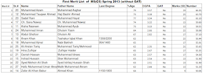 First Merit List of MS(CS) for the academic session 2013-2015 (without GAT) On February 2013